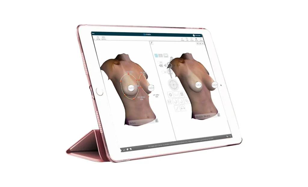 Ce logiciel 3D permet de modéliser en 3D votre poitrine ou votre visage pour qu’ensuite le docteur puisse vous proposer différents résultats de simulations en prenant en compte les caractéristiques essentielles de votre anatomie.